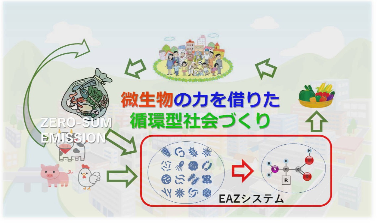 令和時代に開発されたEAZシステムは、今までのBSAにさらにアミノ酸液肥処理装置を加えてゼロエミッション化と価値の創出を共に実現し、SDGs最高峰の生ごみ処理措置です。